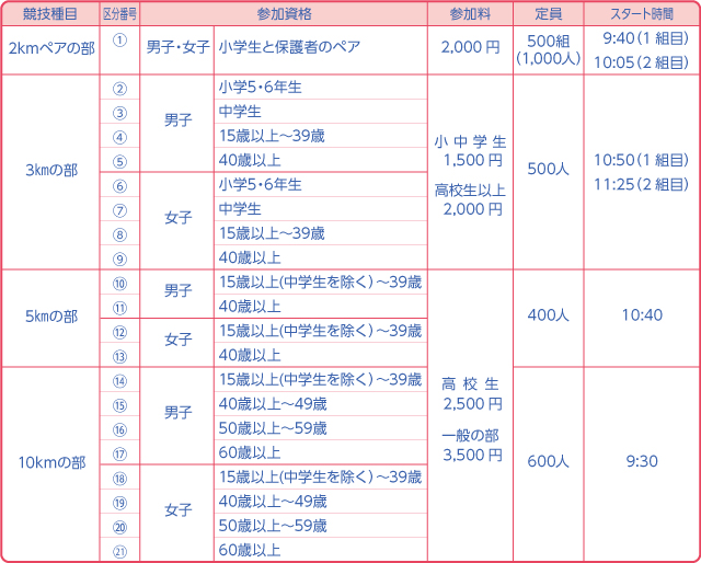 5km・10kmの部 一般の部3,500円・高校生2,500円